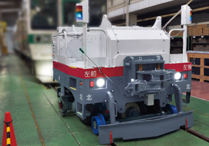そのため、独自開発の操舵システムを組み込んだ電動運搬車輌や、インホイールモーターを採用した環境対応車輌など、